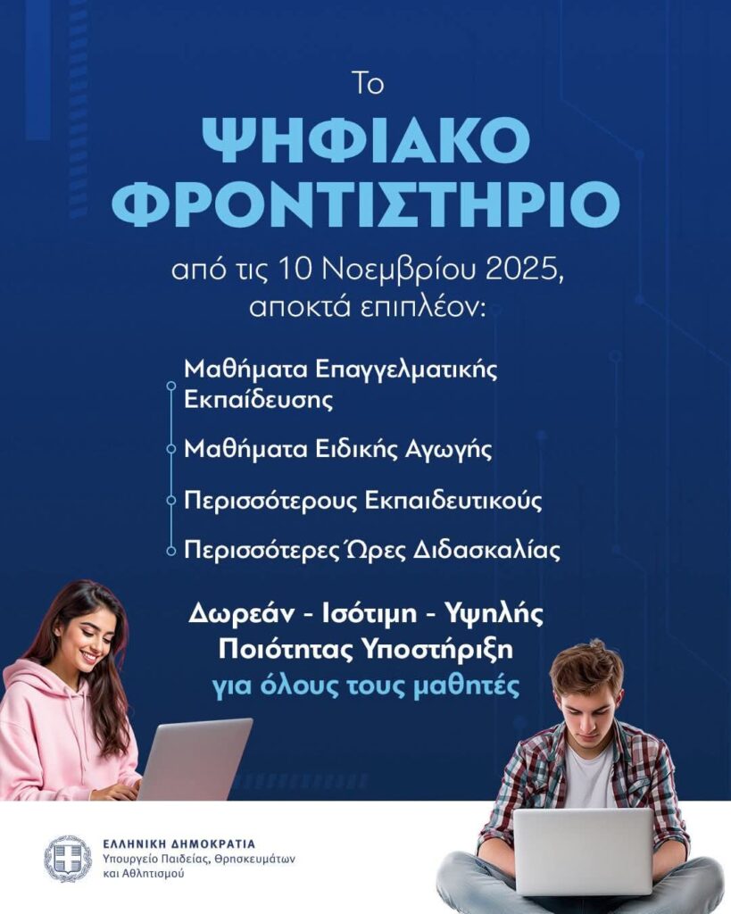 Από σήμερα, το Ψηφιακό Φροντιστήριο περνά σε μια πιο δυναμική και σύγχρονη φάση, επεκτείνοντας τη δράση του στα 45 πανελλαδικώς εξεταζόμενα μαθήματα, ενώ για πρώτη φορά εντάσσει 4 επιπλέον μαθήματα Επαγγελματικής Εκπαίδευσης. Πρόκειται για μια πρωτοβουλία που συνδέει την εκπαίδευση με την κοινωνική βιωσιμότητα, προσφέροντας ευκαιρίες και επιλογές σε όλους τους μαθητές, ανεξαρτήτως προσανατολισμού ή περιοχής.