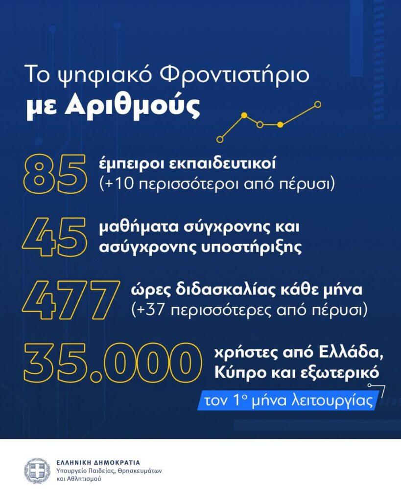Η Υπουργός Σοφία Ζαχαράκη, με συνέπεια και όραμα, υπογραμμίζει ότι το Ψηφιακό Φροντιστήριο ήρθε για να μείνει. Ήδη έχει αγκαλιαστεί από μαθητές και εκπαιδευτικούς σε όλη τη χώρα, αποτελώντας παράδειγμα ψηφιακής και κοινωνικής καινοτομίας. Με τη συνεχή ενίσχυσή του από έμπειρους εκπαιδευτικούς και με πλουσιότερο εκπαιδευτικό υλικό, το πρόγραμμα προάγει την ψηφιακή βιωσιμότητα και ενισχύει τη διά βίου μάθηση, αξίες κεντρικές για τη σύγχρονη εκπαίδευση.