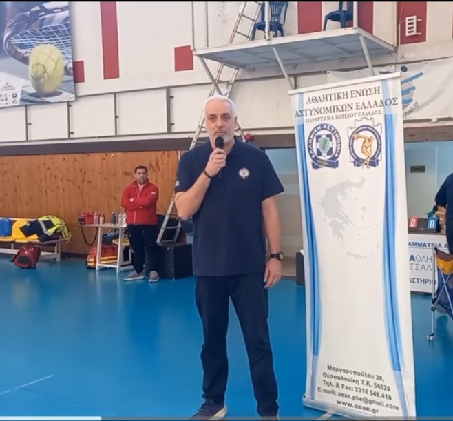 Ο Βαγγέλης Ιωάννης στον σύντομο χαιρετισμό του ευχαρίστησε όλους τους αστυνομικούς που μετείχαν στον φιλικό αγώνα αλλα και στους αθλητές που ανταποκρίθηκαν στο κάλεσμα τους