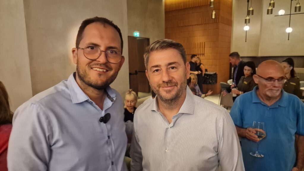 Μία σημαντική συνάντηση πραγματοποιήθηκε στη Θεσσαλονίκη ανάμεσα στον αρχηγό της αξιωματικής αντιπολίτευσης, Νίκο Ανδρουλάκη, και τον δημοσιογράφο Στέφανο Μίντζα, ο οποίος εκπροσώπησε τον όμιλο viosimi.gr. Στο επίκεντρο της συζήτησης βρέθηκαν η βιώσιμη ανάπτυξη, οι ανανεώσιμες πηγές ενέργειας και το κρίσιμο ζήτημα της λειψυδρίας.